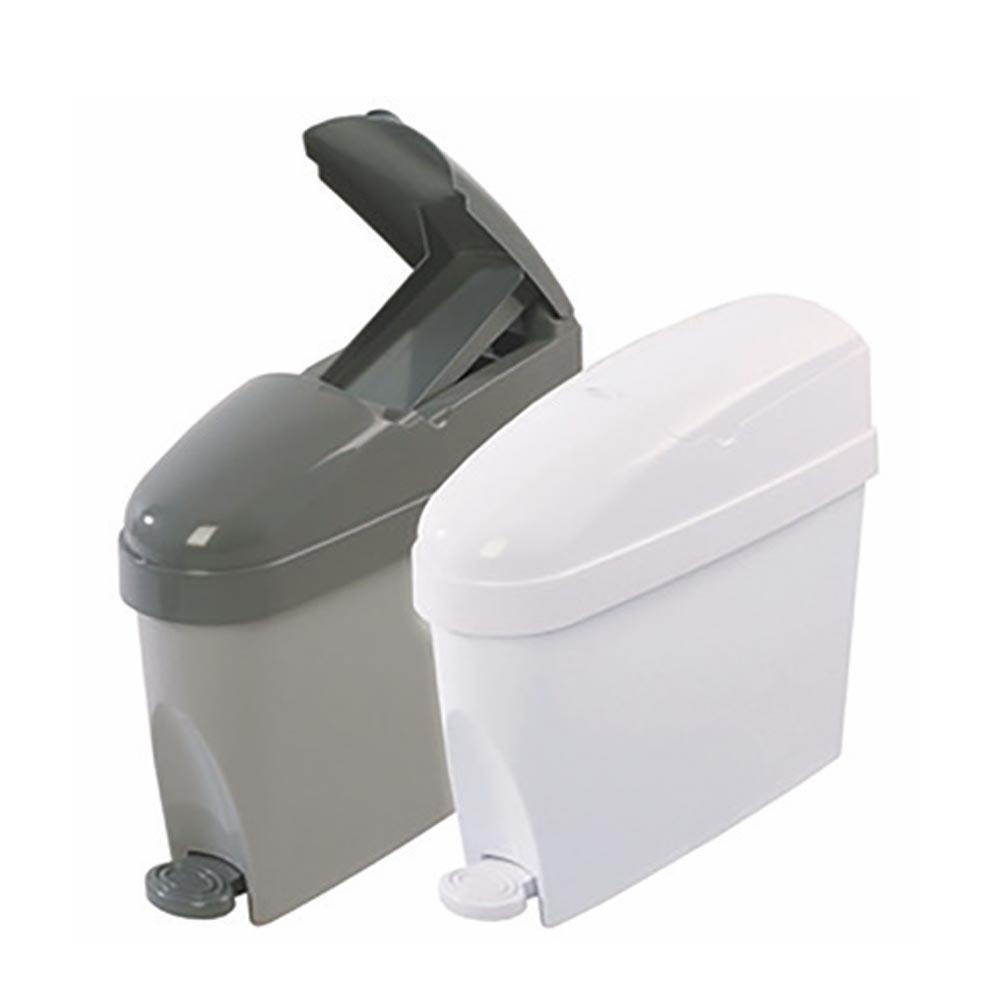 A sanitary bin is a specialized container used to safely dispose of sanitary waste, such as used feminine hygiene products, in public restrooms, ensuring proper hygiene and sanitation.